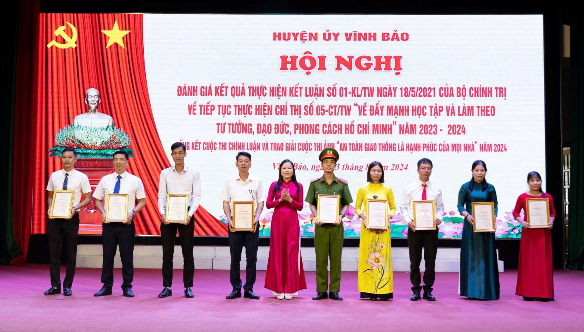 Sáng ngày 23/8/2024, tại Trung tâm Văn hóa Nguyễn Bỉnh Khiêm. Ban Thường vụ Huyện ủy tổ chức Hội nghị trao giải về: “Học tập và làm theo tư tưởng, đạo đức, phong cách Hồ Chí Minh” năm 2023 - 2024; tổng kết Cuộc thi chính luận và trao giải cuộc thi ảnh “An toàn giao thông là hạnh phúc của mọi nhà” năm 2024. Trường Tiểu học Vĩnh Phong rất vinh dự được nhận giải phong trào và tác phẩm ấn tượng do đồng chí Nguyễn Hoàng Long trao tặng tại hội nghị.