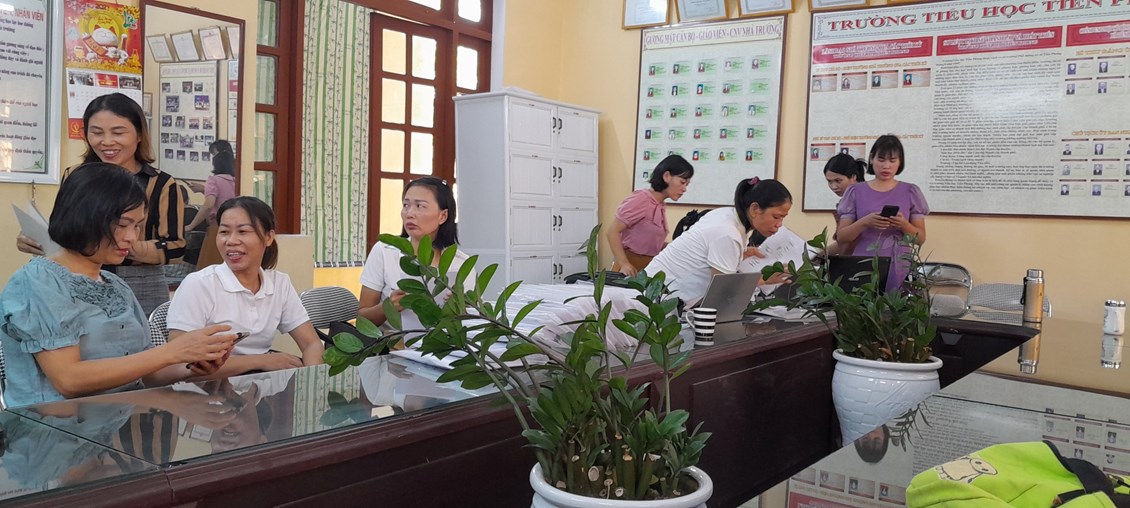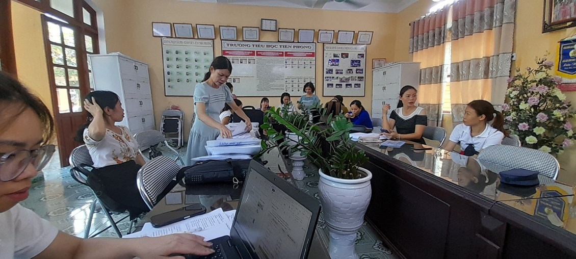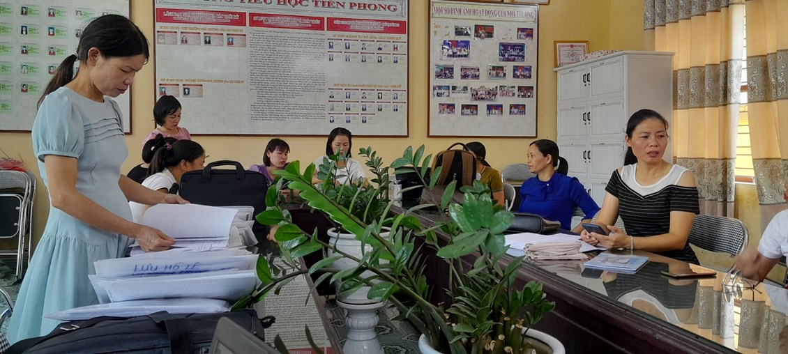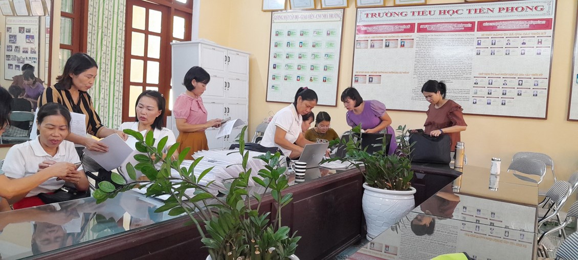 Thực hiện sự chỉ đạo và hướng dẫn của phòng Nội vụ huyện, phòng GD&ĐT huyện Vĩnh Bảo về các biểu mẫu diễn biến chức danh nghề nghiệp. các đ/c cán bộ, giáo viên, nhân viên nhà trường tích cực bắt tay vào nghiên cứu và làm các biểu mẫu do phòng Nội vụ huyện gửi.
