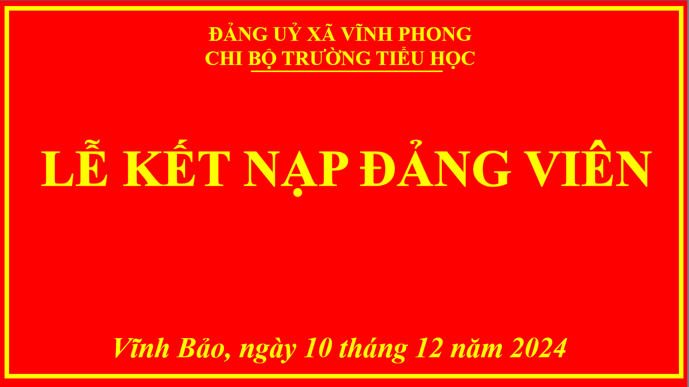 Thực hiện Quyết định của Ban Thường vụ Huyện uỷ Vĩnh Bảo, chiều ngày 10/12/2024, Chi bộ Trường TH Vĩnh Phong – Tiền Phong, trang trọng tổ chức Lễ kết nạp đảng cho quần chúng Phạm Thị Ngọc.
