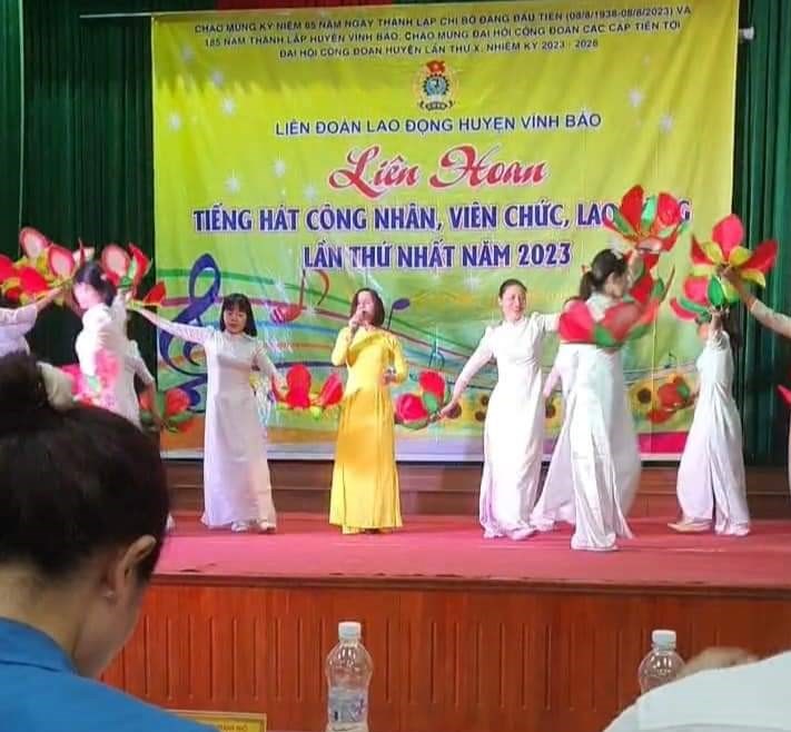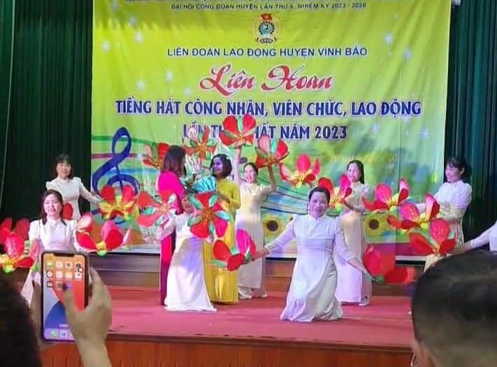 Tham dự hội thi đoàn viên Công đoàn trường Tiểu học Vĩnh Phong - Tiền Phong kết hợp cùng Công đoàn Mầm Non và Công Đoàn xã Vĩnh Phong tham gia 2 tiết mục văn nghệ tại hội thi.