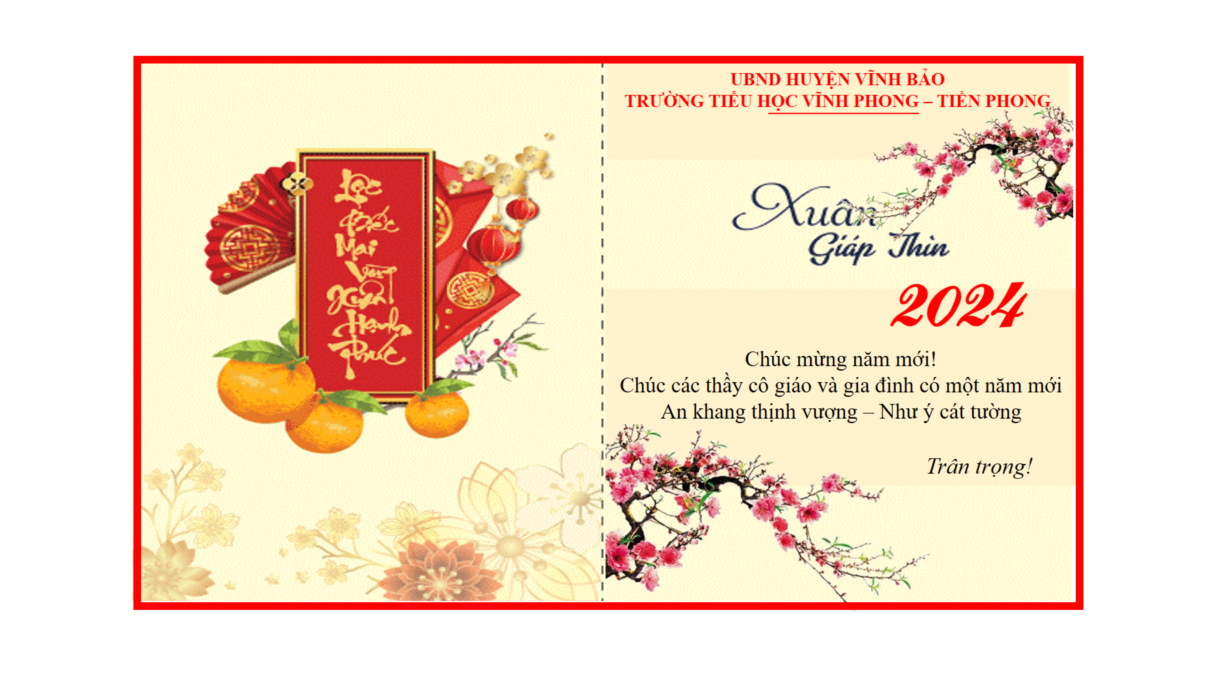 Nhân dịp Tết Nguyên đán giáp Thìn 2024, Trường Tiểu học Vĩnh Phong - Tiền Phong đã tổ chức trao tặng quà cho giáo viên có thu nhập thấp. Đây là hoạt động có ý nghĩ thiết thực nhằm động viên, khích lệ giáo viên, nhân viên nhân dịp năm mới đang đến gần.