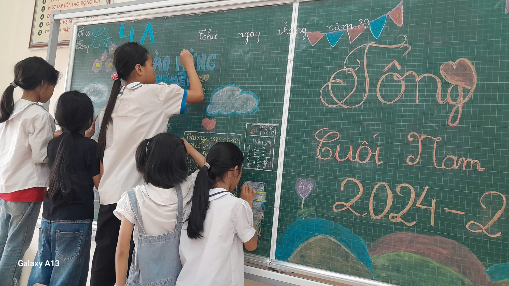 Hoạt động vẽ bảng không chỉ là dịp để các em thể hiện năng khiếu mỹ thuật mà còn giúp các em ôn lại một năm học đáng nhớ, bồi đắp tinh thần đoàn kết, hợp tác giữa các thành viên trong lớp. Mỗi nét vẽ là một thông điệp yêu thương, một lời tri ân thầy cô, và cũng là sự hứa hẹn cho chặng đường phía trước.